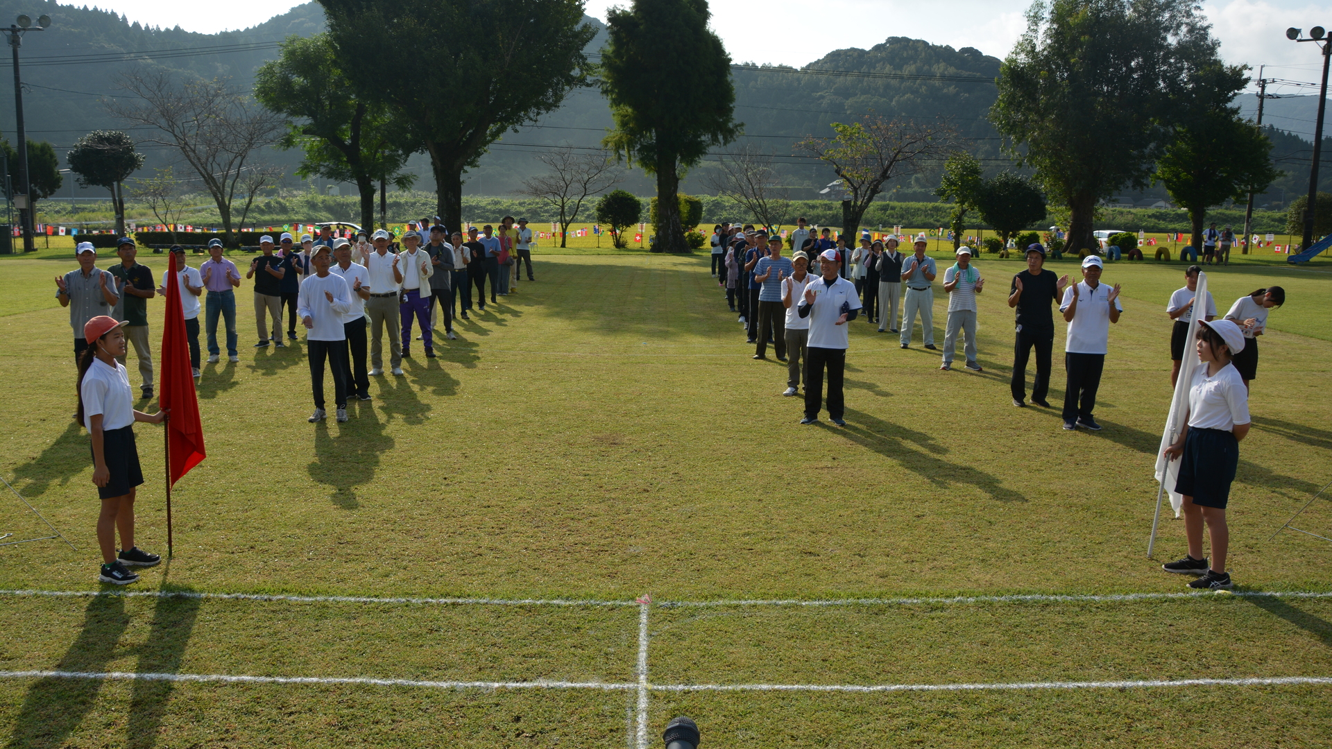 清水小学校と清水地区合同の運動会が10月5日閉校記念事業として、およそ200人の参加を得て、にぎやかに開催されました。 特徴のある種目として「時代をつなぐ紅白リレー」では、80歳代の皆さんのグラウンドゴルフボール運びに始まり、リム回しなど年代ごとの競技、中学生の大玉転がしと続き、ラストは6年生児童の徒歩でゴール。応援席から歓声が沸いていました。