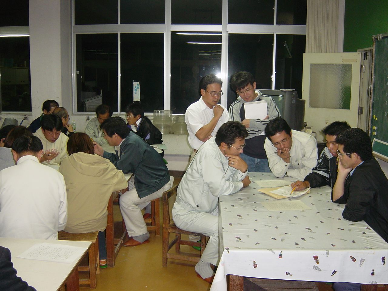 地域の役員や若者、有志が集まり、祭りの内容について、話し合っている様子です。20年が経過し高齢化が進んだ私たちの地域では、今も若者として活躍しています。