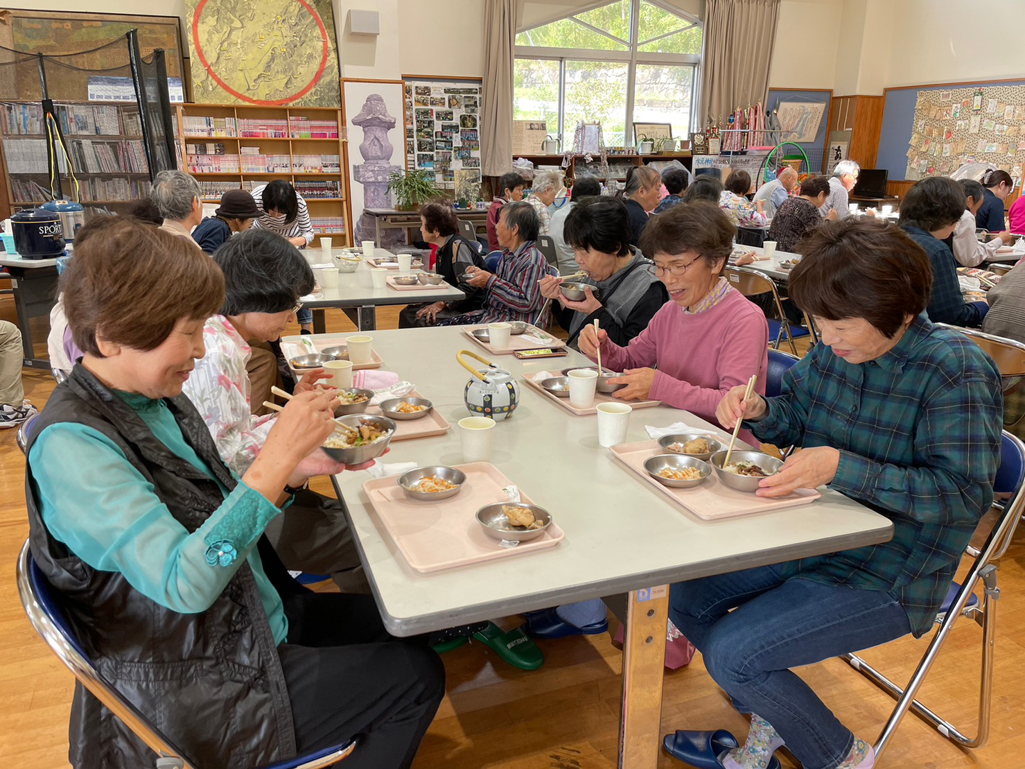 令和5年度南九州市のまちづくり大相撲に応募した活動の一つ、地区民の交流会を10月15日に開催しました。 この活動は、もっと地区公民館(せせらぎ館)を地区民に利用してもらうための企画で、会の名称を「せせらぎ館で語ろ会」とし、乗り合わせ等により高齢者を送迎、各種講座を取り入れ、子どもから高齢者まで、地区民およそ50人が参加しました。 会では、認知症予防のためのレクレーション、健康講座、地域の郷土料理鶏飯やなますなどの昼食、清水地区の懐かしい写真を大型テレビで視聴するなど、笑い声が絶えない会となりました。